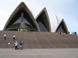 So take-away heartburn busy digesting, we headed back to see the show. We had to check our backpack and couldn't take our camera inside - not even up into the foyer. This was VERY disappointing. We'd love to have taken some pics of the inside of the Opera House and Concert Hall but that just wasn't possible. Scott and I got ourselves a drink and went walking around all goggle-eyed and gaping jaws!!! The Opera House is something which HAS to be seen to be believed. The inside is a mixture of industrial raw concrete, wooden panelling and glass. An odd combination, granted, but it just works. I'm not sure whether that's just through sheer audacity or just due to the scale of the structure - everything's enormous. Not just the structure itself, but the cavernous spaces the structure creates. Truly awesome.