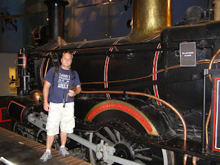 There was SO much to see. We arrived shortly after it opened and left just before it closed - mostly because our feet were sore by that stage. I took plenty of pics of Scott playing with all the cool toys! It's a fascinating museum. The displays are great - not your usual museum where all the exhibits look somewhat moth-eaten. There are different sections - the transport hall, cyberworld (computers), the steam hall, design (clothing, jewellery, art, furniture), space, shopping (1880 - 1930), musical instruments, engineering, experiments. It's a magical place for kids of all ages. And Scott was no exception!